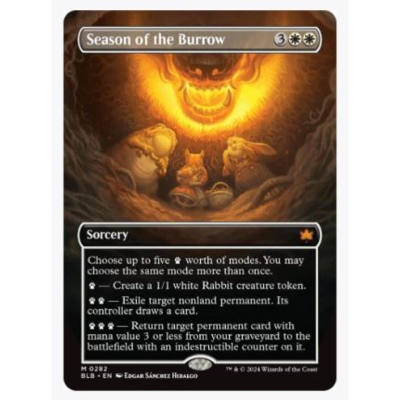 Choose up to five [Paw] worth of modes. You may choose the same mode more than once.[Paw] Create a 1/1 white Rabbit creature token.[Paw 2] Exile target nonland permanent. Its controller draws a card.[Paw 3] Return target permanent card with mana value 3 or