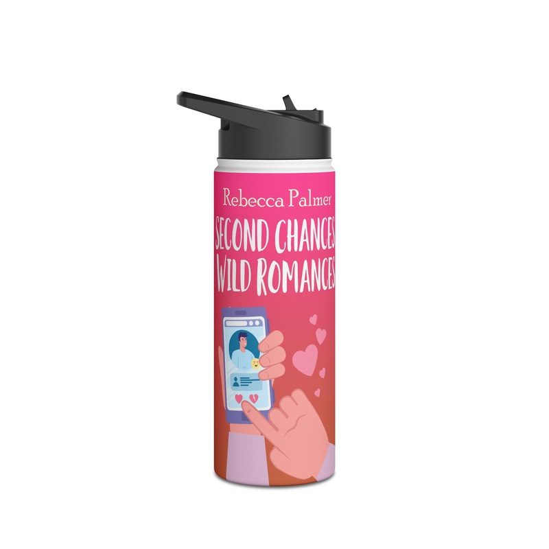 Quench your thirst in style with this 18oz stainless steel water bottle featuring a double-wall stainless steel build that keeps your drinks frosty for 24h and soothingly hot for 12h. This BPA-free, steel water bottle comes with a twist-on lid for easy sipping, making it excellent for daily use at work, at college, in the car, and beyond. The cover art in this water bottle is from Rebecca Palmer’s book, Second Chances, Wild Romances.