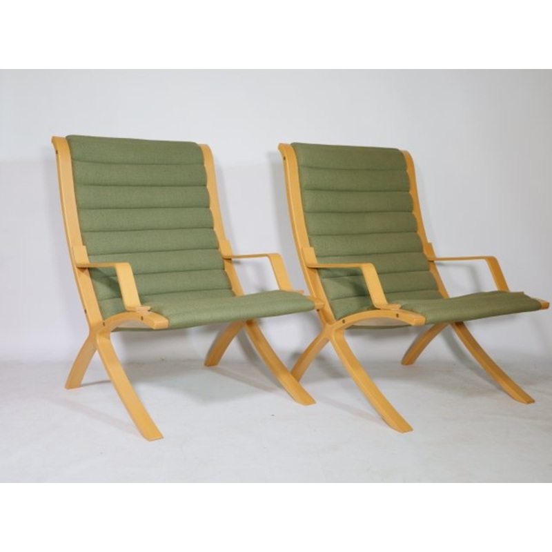 Set of 2 Fritz Hansen X Chairs. Good condition see photos. The armchairs are super comfortable and real design classics. Width: 67cm Height: 93cm Depth: 74cm Seat height: 40 cm Creator Peter Hvidt & Orla Mlgaard-Nielsen Manufacturer Fritz Hansen Design Per