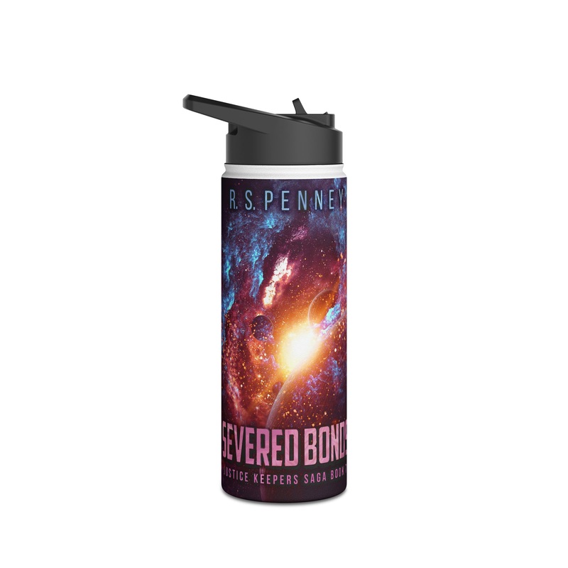 Quench your thirst in style with this 18oz stainless steel water bottle featuring a double-wall stainless steel build that keeps your drinks frosty for 24h and soothingly hot for 12h. This BPA-free, steel water bottle comes with a twist-on lid for easy sipping, making it excellent for daily use at work, at college, in the car, and beyond. The cover art in this water bottle is from R.S. Penney’s book, Severed Bonds.