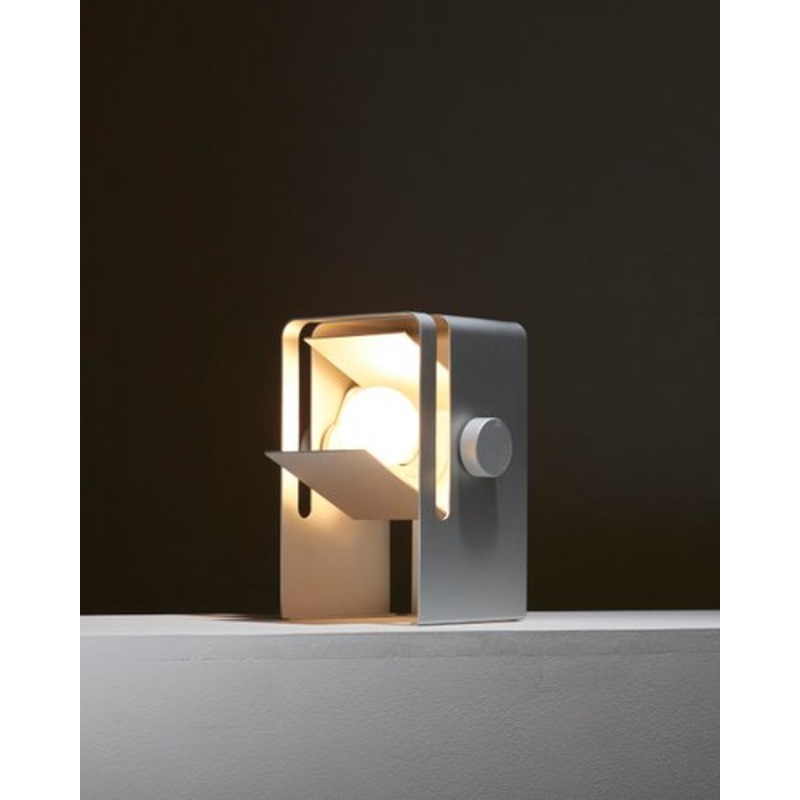 Shade table lamp by Walter & Moretti. This model is a new edition of an original W&M design, a timeless lamp featuring a swivel shade, all finished in natural anodized aluminum. The lampshade is adjustable to direct the light. The lamp is equipped with an