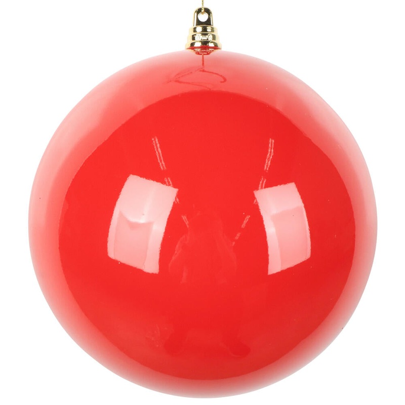 Add a vibrant touch to your holiday decorations with this set of four 6" red high-gloss ball ornaments. Crafted from shatterproof plastic, they offer lasting beauty without the worry of breakage. Each ornament features a brilliant enamel finish that catche