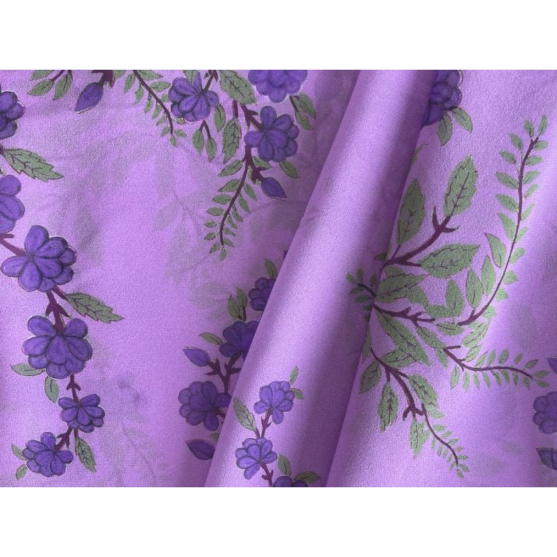 A sheer silk chiffon in a print of cascades of gorgeous lapis flowers on a deep violet background - this airy chiffon is perfectfor a sweet blouse, a charming sundress, or a summer tank top. Made in Italy. 100% silk. 54" wide.