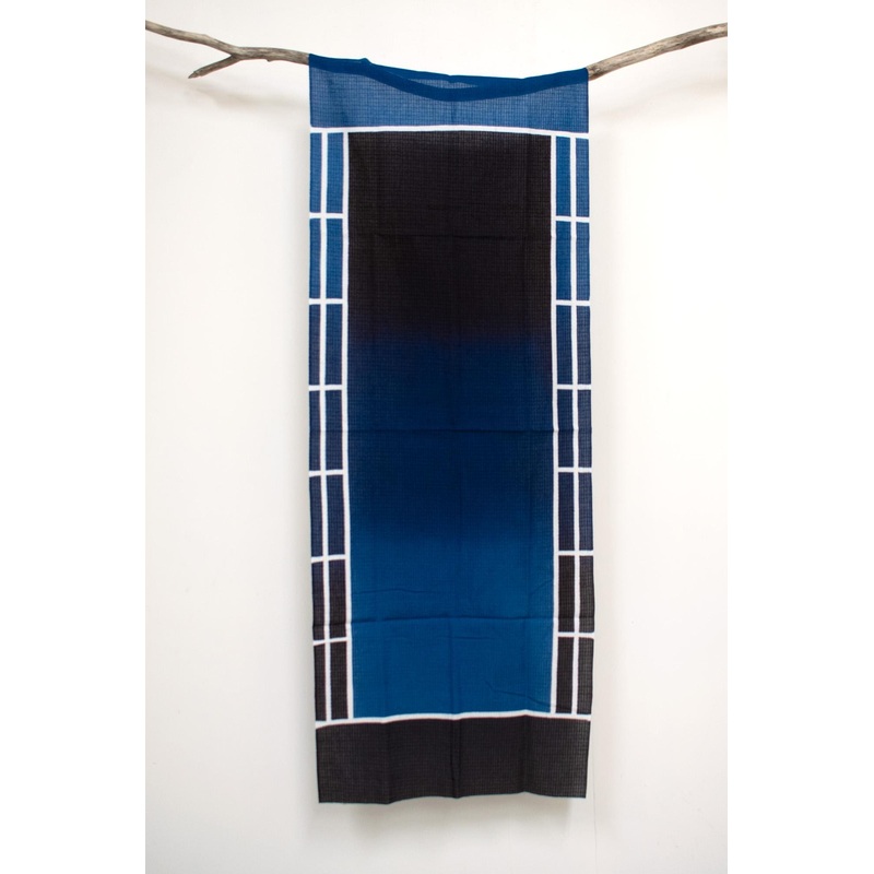 100% cotton tenugui panel.Echappes Tenugui Designed by Pauline AndrolusThis tenugui is a unique piece dyed usingchusen, a traditional Japanese hand-dyeing technique.Designed by Pauline Androlus in collaboration with renowned Tokyo-based dye studio Shin Edo