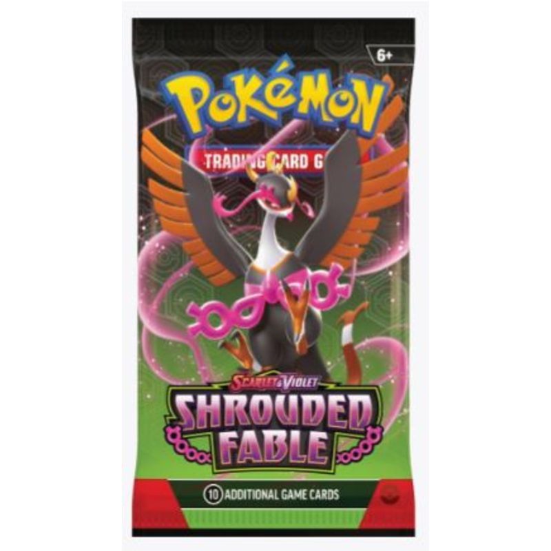 Each Shrouded Fable booster pack contains 10 cards and 1 Basic Energy. Cards vary by pack.