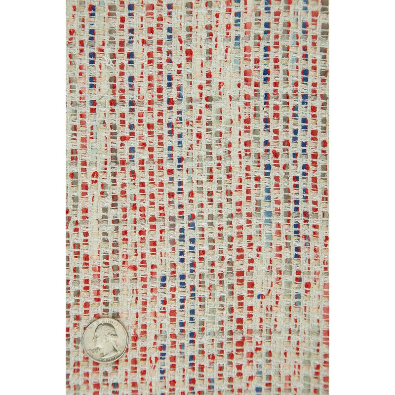 Silk Tweed BGP 622 Fabric is made from a combination of silk, cotton and lurex threads, and weighs anywhere from 106 to 150 mommes. Raw silk and cotton yarns and filaments are woven on hand looms using silver metallic lurex threads. This raw silk tweed is most commonly used for blazers, jackets, shorts, and other women’s wear. The fabric is sold by the Yard, and measures 44 inches in width.
