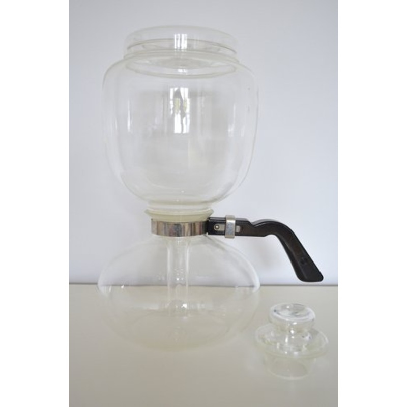 Bruno Mauder's legendary coffee maker "Sintrax" designed for Schott Mainz 1960s. Bruno Mauder was a factory designer at the Schott company- Firefight glass- Bakelite handle- incl. Kannendeckel- Mattled with: Sintrax Schott u. Gen Mainz Jenaer Glass- Size: