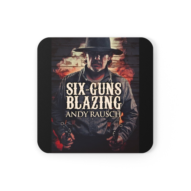 These coasters are made with a high-gloss top and feature a cork back to prevent sliding, and each order comes with a set of four coasters. The cover art in these coasters is from Andy Rausch's book, Six-Guns Blazing.