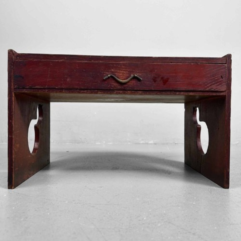 This charming Japanese writing desk, also known as a (shosai-ki), dates back to the 1920s and exudes simplicity and elegance.The piece features a single drawer with a gracefully curved handle, highlighting its authentic Japanese craftsmanship.with its comp