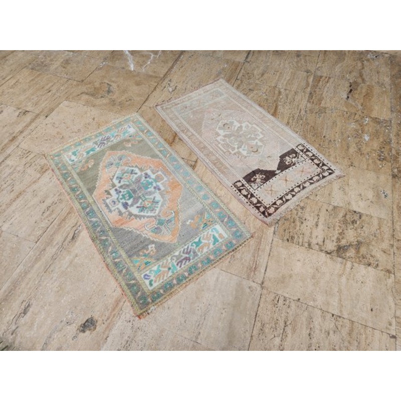 Distressed Turkish Small Rug – a Pair Ethnic