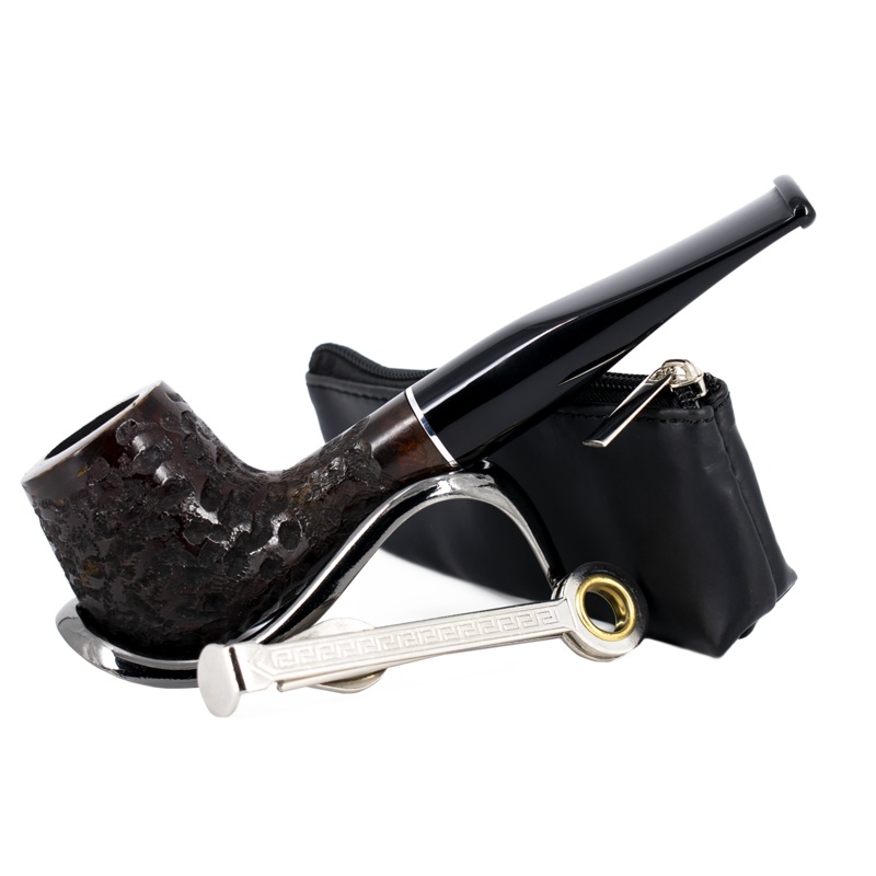 The well-made brown leather pouch contains a 9mm filter straight rustic finish briar pipe (there are 3 filters included). There are also a few bristle pipe cleaners to get you started and a 3-in-1 pipe tool with a spoon, spike and tamper, vital to maintaining your pipe.