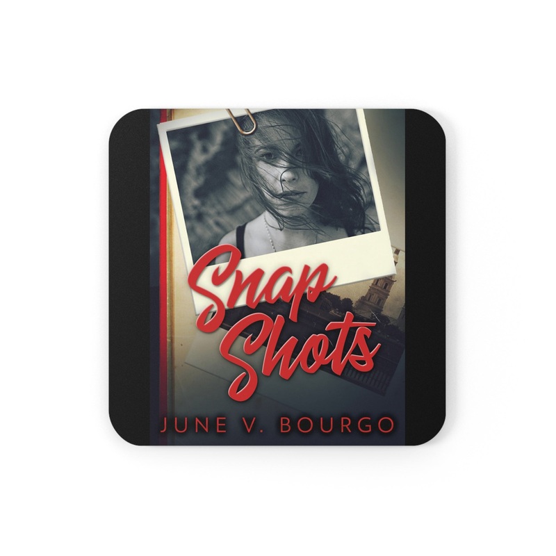 These coasters are made with a high-gloss top and feature a cork back to prevent sliding, and each order comes with a set of four coasters. The cover art in these coasters is from June V. Bourgo’s book, Snap Shots.