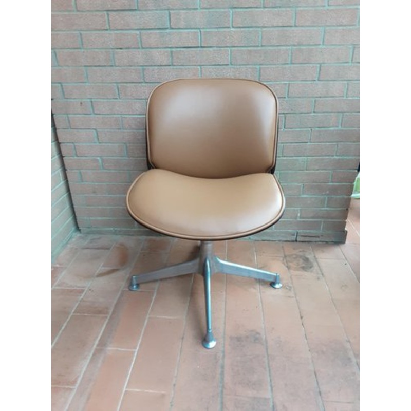 Armchair with new light brown leather upholstery, designed by Ennio Fazioli for MIM, first series. 60s. Creator Ennio Fazioli Manufacturer MIM Design Period 1960 to 1969 Production Period 1960 to 1969 Country of Manufacture Italy Identifying Marks This pie