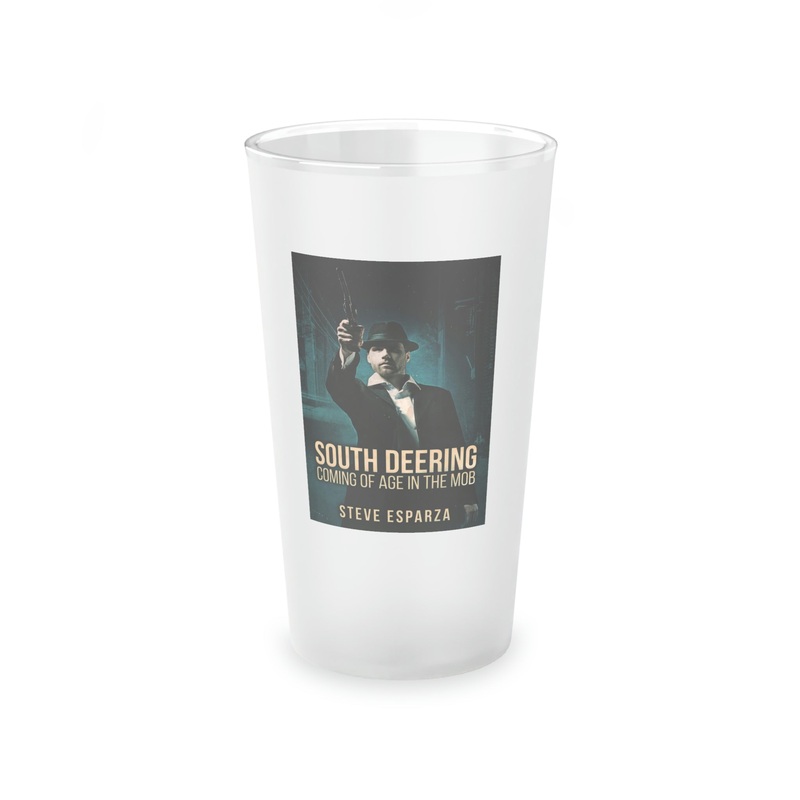 This frosted matte finish pint glass is versatile and dishwasher-safe. The cover art in this pint glass is from Steve Esparza's book, South Deering.