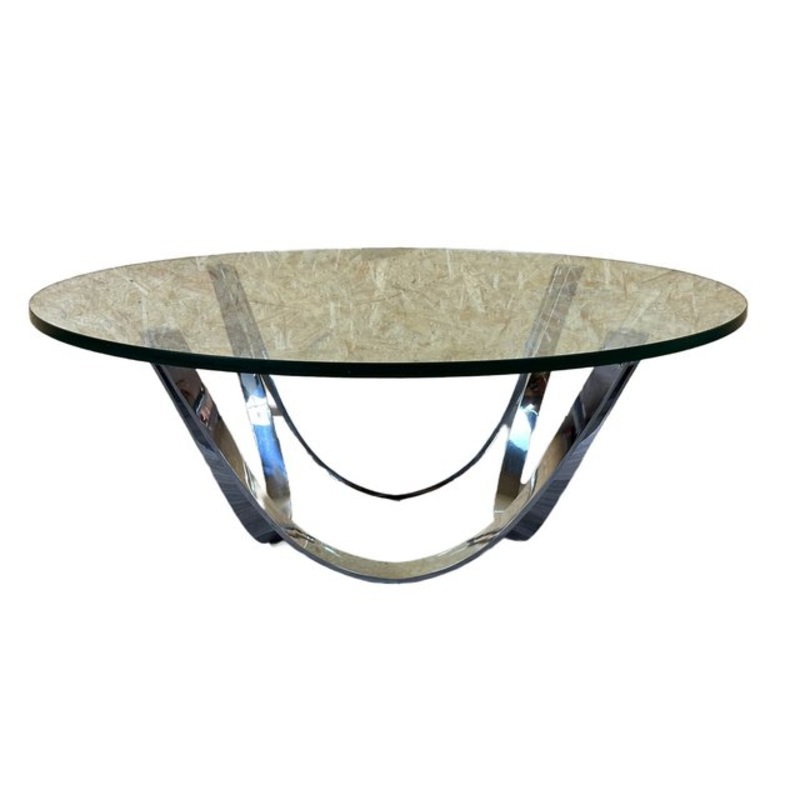 60s 70s coffee table glass table by Werner Lindner for Bacher Space AgeObject: coffee tableManufacturer: BacherCondition: goodAge: around 1960-1970Dimensions:Diameter = 110cmHeight = 42cmOther notes:Material: glass, metal Creator Werner Lindner Manufacture