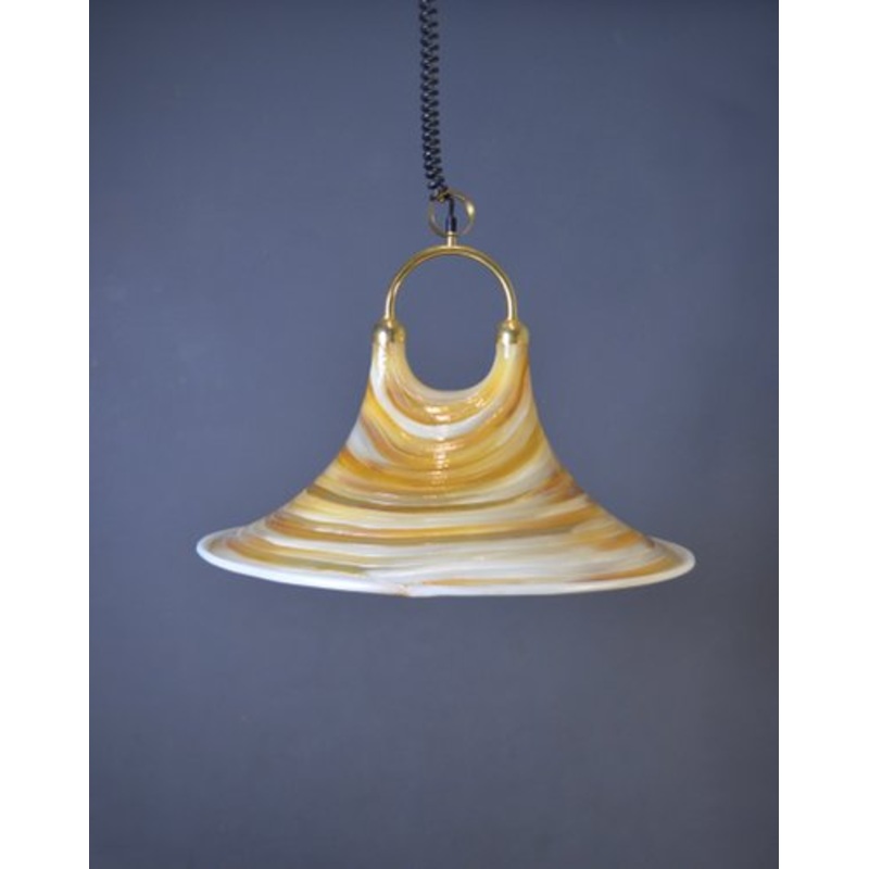 Large pendant lamp in fiberglass and acrylic glass mix. Made in the 1970s in Germany by Cristallux. The structure is in gilded brass.The lamp has a system for lowering and raising (from 90 cm to 1.90 m) (from 35'' to 74,8'').It has two E27 socketsTruly spe