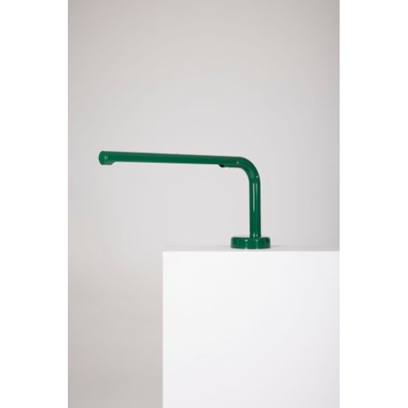Space Age tube table lamp by designer Anders Pehrson for Atelje Lyktan, 1970s. Embodying the elegance and innovation of the Space Age movement, its refined silhouette, composed of a long green metal reflector, combines modernity and functionality. The dist