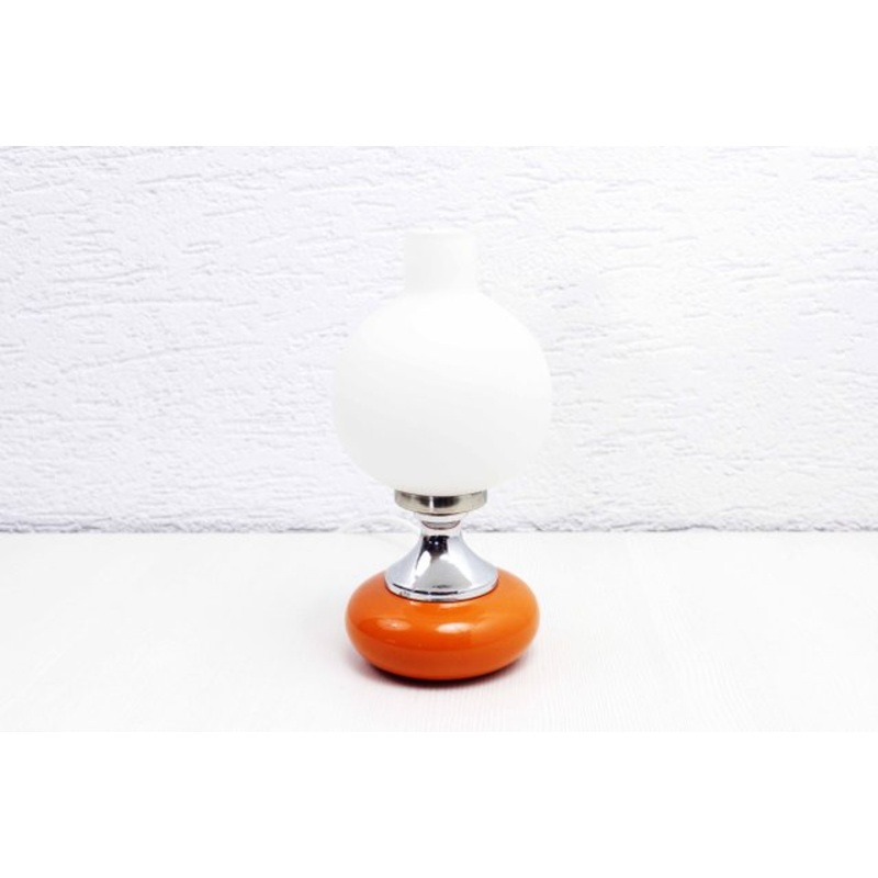 with its original opaline glass and this orange and chrome base, this little mood lamp transports you directly into a Space Age atmosphere.