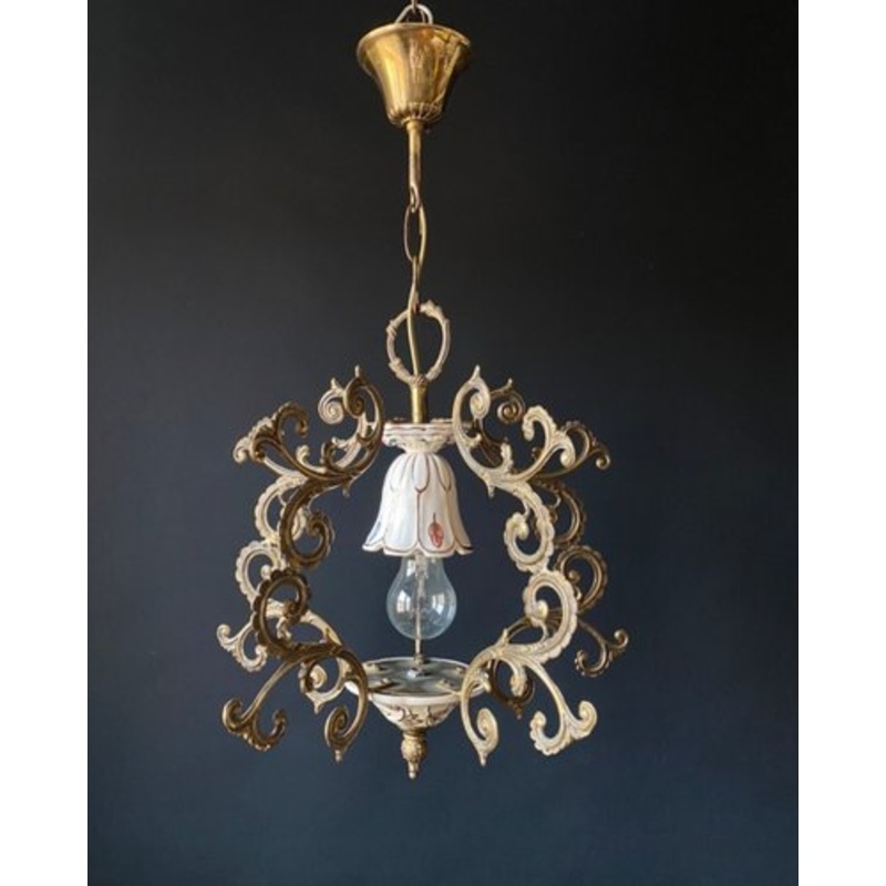 The chandelier is made of brass – beautiful artistic forging. Decorated with hand-painted ceramics. Extraordinary airy work!