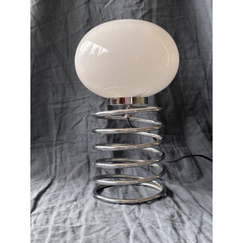 Magnificent spiral lamp in the style of Ingo Maurer, spring model for design m.1970.Original glass lampshade (22cm diameter)Chromed metal structure.Total height 38cm.In superb condition. Creator Ingo Maurer Design Period 1970 to 1979 Production Period 1970