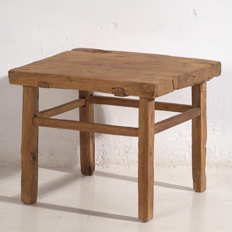 Antique square side table (c.1920) Dimensions: Width: 60 cm Depth: 55 cm Height: 50 cm Style: Qing Materials and techniques: Elm wood Place of origin: Imperial China Epoch: Early twentieth century Date of manufacture: Around 1900 Condition: Good. Wear cons
