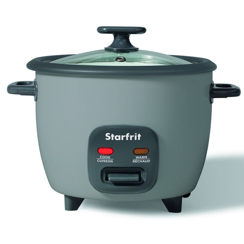 The Starfrit Rice Cooker, a one-step 10-cup (80oz) capacity rice cooker that makes preparing rice super easy.Comes with measuring cup, steamer basket and serving spoon. The serving container is non-stick, durable and removable.Control panel with indicator