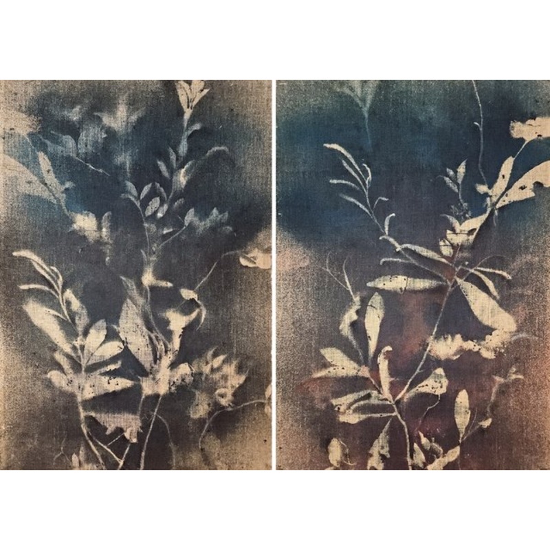 Unique work made on jute canvas with ink and acrylic colors representation of flowers plants and nature In the shadows a sort of slab of the soul of botanical vegetation the work performed both sides of the canvas is a Double-Face