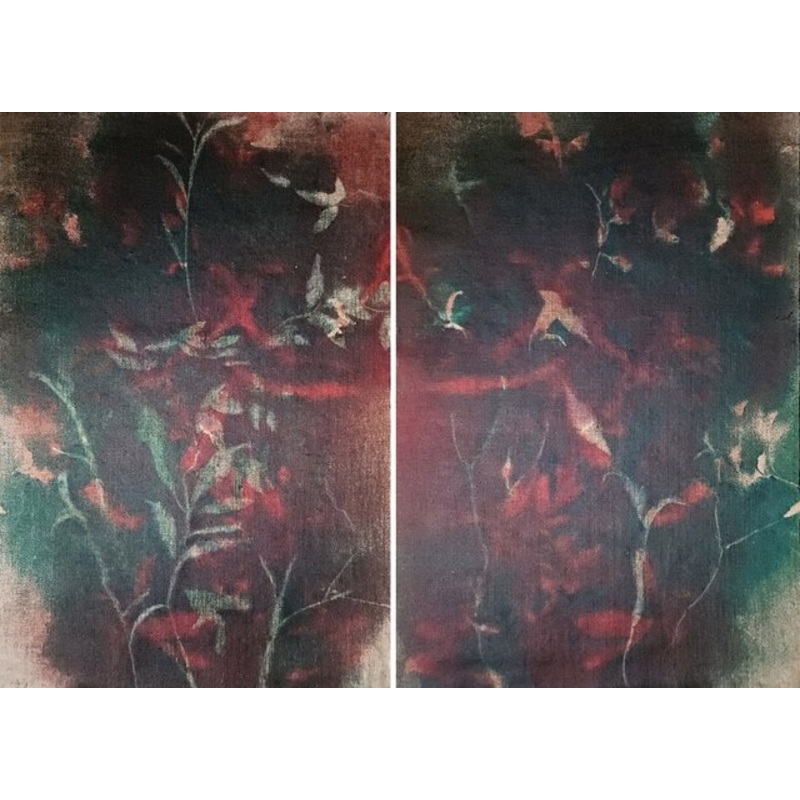 Unique work made on jute canvas with ink and acrylic colors representation of flowers plants and nature In the shadows a sort of slab of the soul of botanical vegetation the work performed both sides of the canvas is a Double-Face