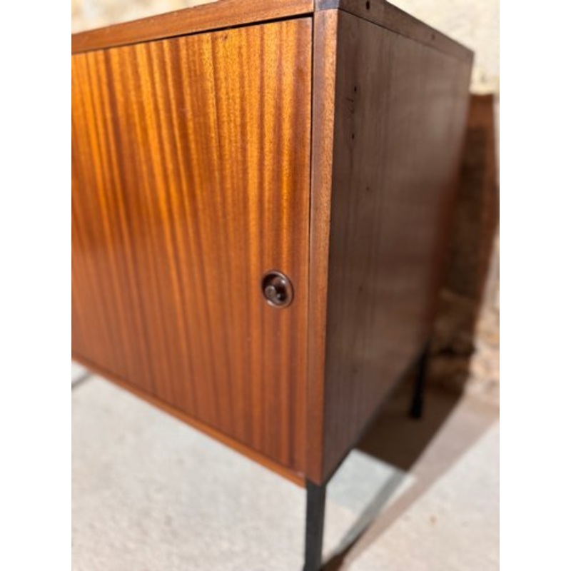 Pierre GUARICHE (1926-1995) - ARP (Plastic Research Workshop created in 1954 by Motte, Guariche, Mortier), Minvielle editionSTORAGE FURNITURE opening with a leafHe opens through a doorVeneer wood, black lacquered metal baseWork around 1960H. 70.5 cm - L. 7