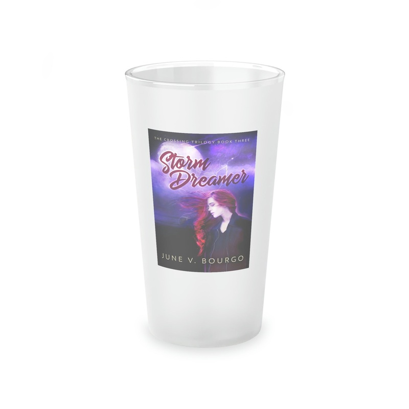 This frosted matte finish pint glass is versatile and dishwasher-safe. The cover art in this pint glass is from June V. Bourgo's book, Storm Dreamer.