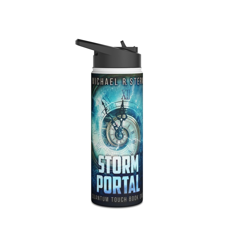 Quench your thirst in style with this 18oz stainless steel water bottle featuring a double-wall stainless steel build that keeps your drinks frosty for 24h and soothingly hot for 12h. This BPA-free, steel water bottle comes with a twist-on lid for easy sipping, making it excellent for daily use at work, at college, in the car, and beyond. The cover art in this water bottle is from Michael R. Stern’s book, Storm Portal.