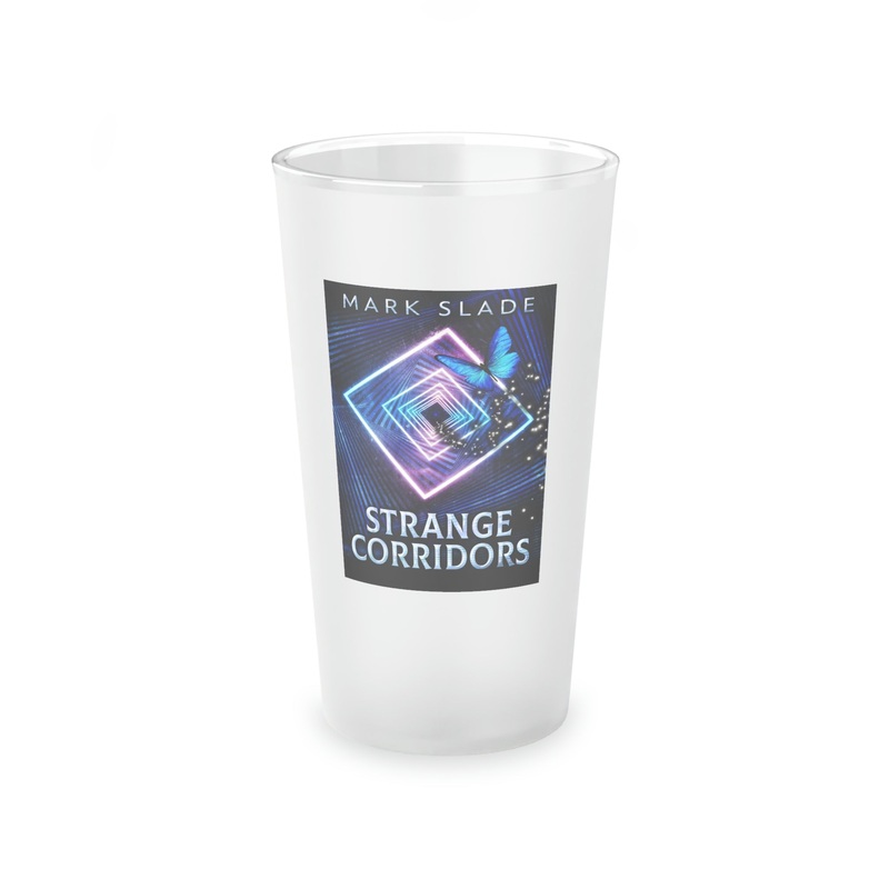 This frosted matte finish pint glass is versatile and dishwasher-safe. The cover art in this pint glass is from Mark Slade's book, Strange Corridors.