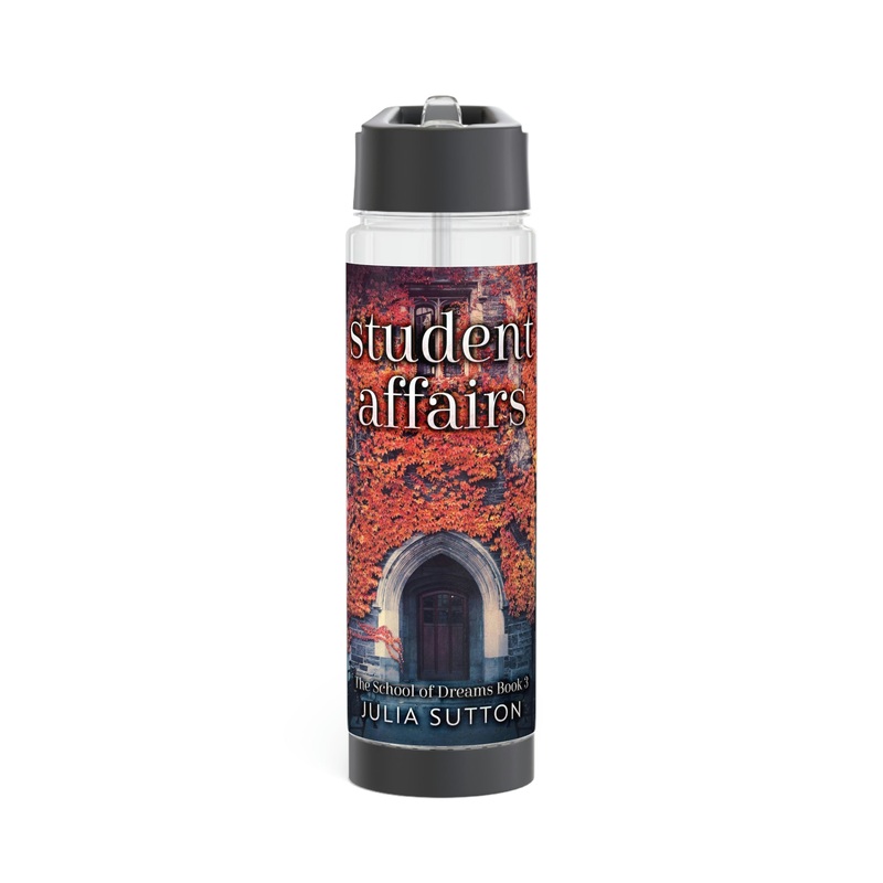 Add flavor and personality to your water with this infuser bottle. Twist the base off to access the infuser and add fruits, tea leaves, or anything you desire to enhance the flavor of your water. On the top, you’ll find a twist-on lid with a flip-top drinking sprout for a seamless drinking experience. This infuser is excellent for using at home, during outdoor excursions, or at the gym as a sports bottle. The cover art in this infuser water bottle is from Julia Sutton’s book, Student Affairs.