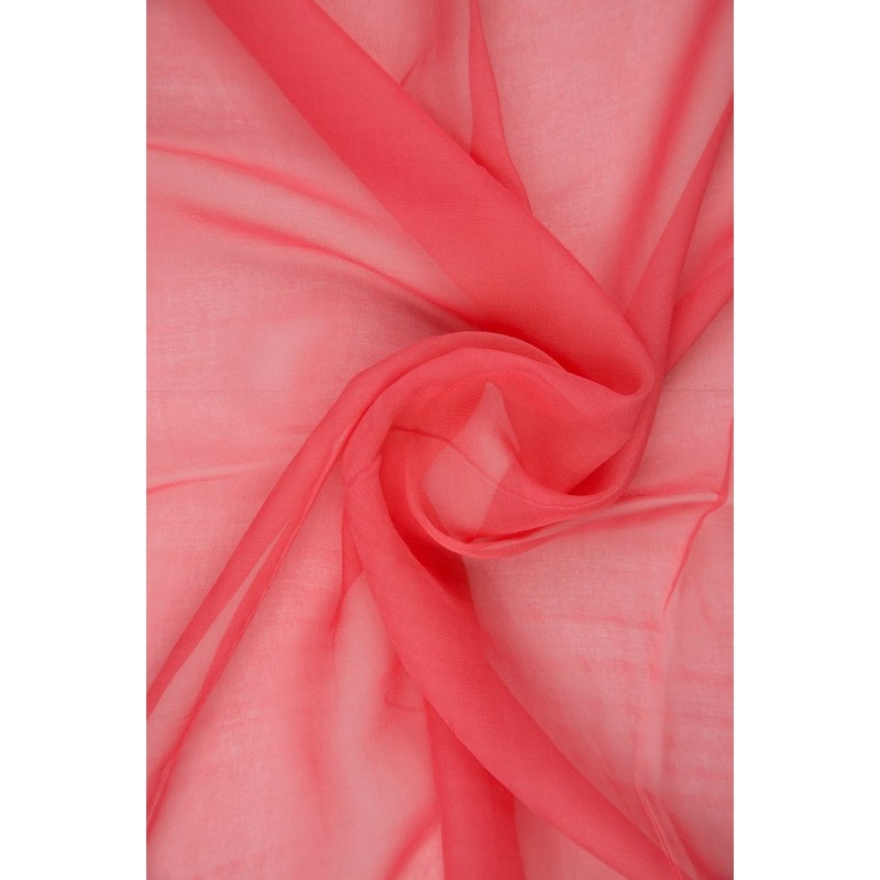 Sugar Coral Silk Chiffon Fabric is a sheer, lightweight fabric most often used in evening-wear, lingerie and bridal/wedding. The name "chiffon" derives from the French word for "rag" or "cloth". Because of its beautiful and soft drape, our silk chiffon fab