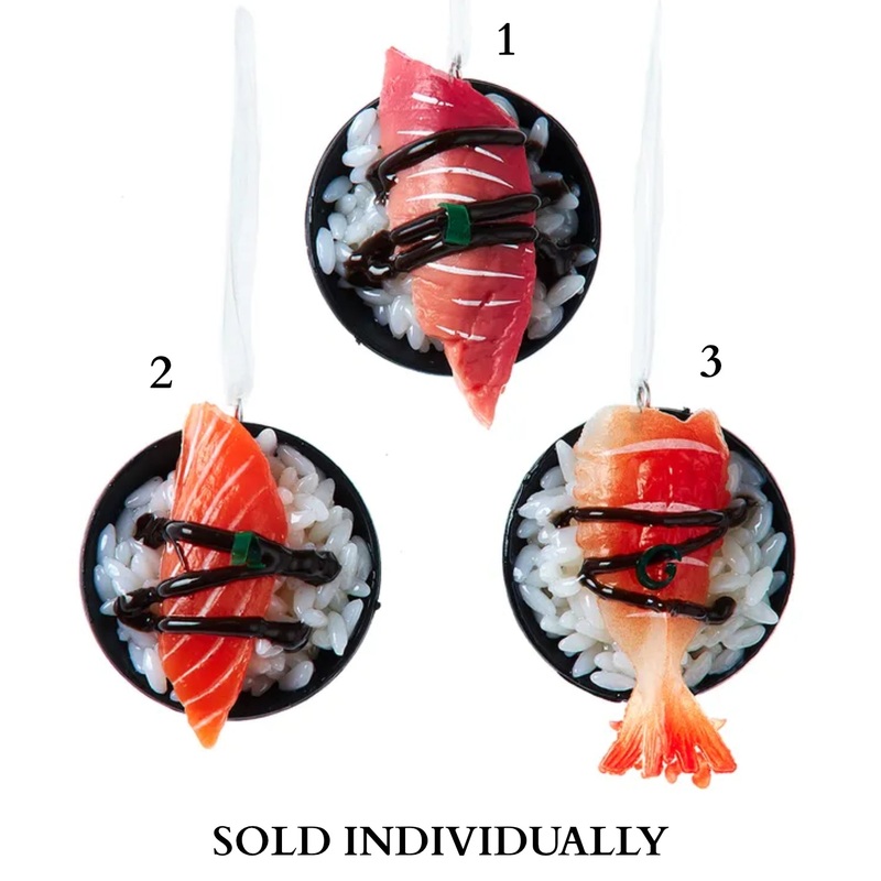 These Sushi Rice Bowl Ornaments are delightful and unique holiday decorations that pay homage to the artistry of sushi making. These ornaments feature miniature rice bowl designs adorned with a variety of sushi creations, adding a touch of culinary charm and Asian cuisine to your festive decor. Choose between three ornaments – each ornament represents a different sushi dish. These ornaments feature intricate details that capture the visual appeal of sushi rolls, sashimi, and other Japanese delicacies, creating a visually captivating effect. Including these ornaments in your holiday decor not only celebrates the art of sushi making but also adds a unique and cultural element to your celebrations. These ornaments capture the essence, charm, and delectable beauty of Japanese cuisine, making them cherished and delightful parts of your holiday festivities, especially for those with a love for sushi and culinary adventures.