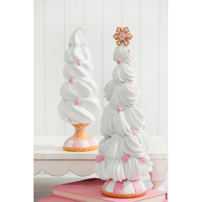 Whisk yourself into the holiday spirit with our Sweet Treats Frosting Trees, offered in a delightful set of two. These enchanting pieces, 11" & 14" tall, meticulously designed to resemble a beautifully iced Christmas tree, will transform your space into a