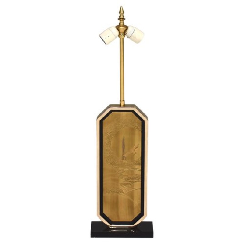 Brass engraved table lamp by Georges Mathias for Designo Maho Belgium, circa 1970. This lamp is a limited edition nr 163 of 250 made. The lamp is signed: Designo Maho 163\250 Designer: Georges Mathias Manufacturer: Maho. Engraved: Designo Maho 163/250 Country: Belgium Period: circa 1970 Material: Brass Size W x D x H: 20 x 10 x 74 without lampshade Condition: Good.