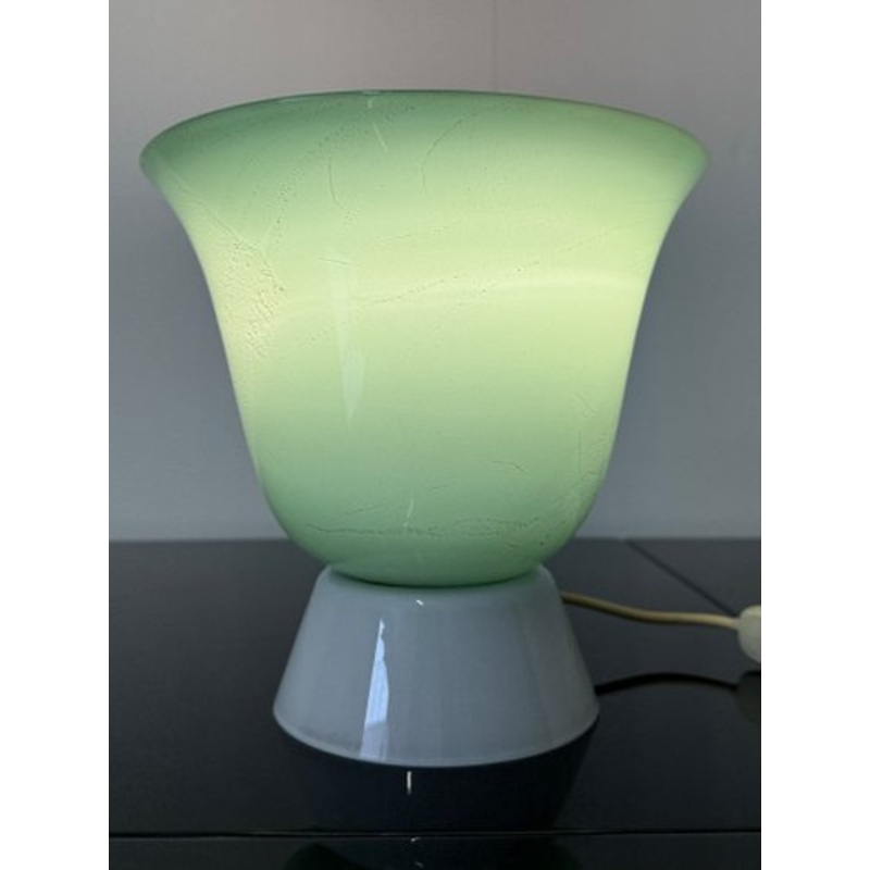 Inverted bell-shaped table lamp in Murano glass, Prod. Venini 1981. In shades of blue/verse, with gold leaf inserts. Iconic model by Tomaso Buzzi. Creator Tomaso buzzi Manufacturer Venini Design Period 1980 to 1989 Production Period Unknown Country of Manu
