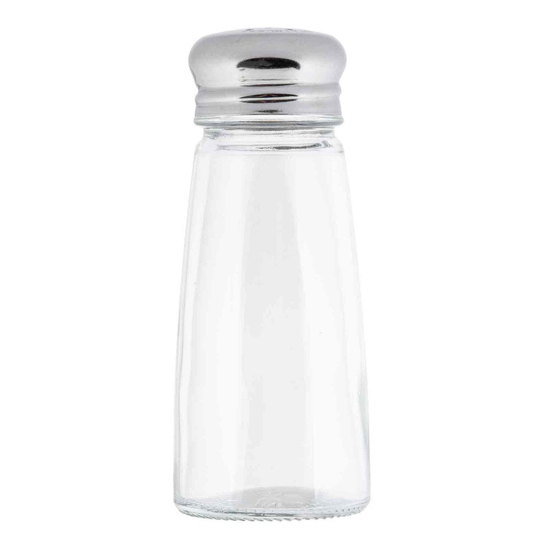 The TableCraft 3 oz Salt & Pepper Shakers has a modern design that looks great with any serving presentation. Made with a clear glass body, the shakers offer quick product identification. Recommended to hand wash only.Sold in packs of 72.Capacity: 3 ozMeas