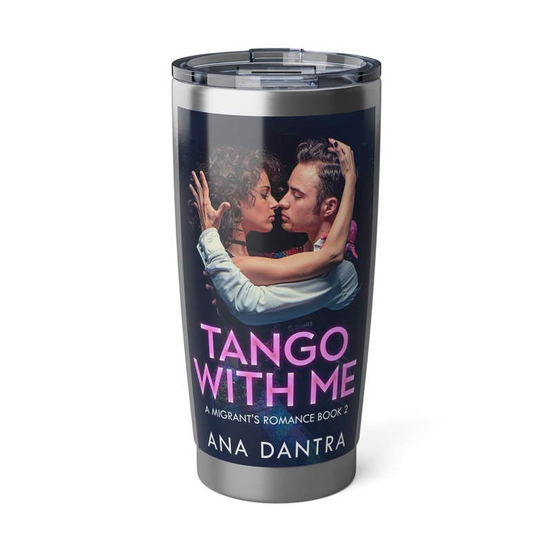 Minimize your plastic footprint with style. This tumbler fits perfectly into car cup holders, and the rubber gasket makes it spill-resistant on bumpier roads. The double-wall insulation makes sure drinks stay at the right temperature until the next pit stop. The cover art in this 20 oz tumbler is from Ana Dantra’s book, Tango With Me.