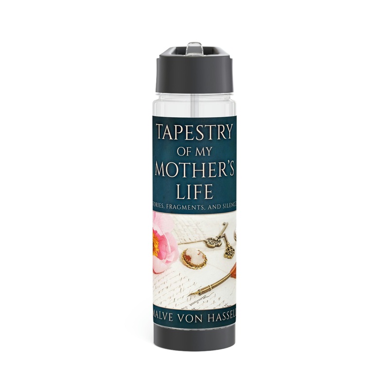 Add flavor and personality to your water with this infuser bottle. Twist the base off to access the infuser and add fruits, tea leaves, or anything you desire to enhance the flavor of your water. On the top, you’ll find a twist-on lid with a flip-top drinking sprout for a seamless drinking experience. This infuser is excellent for using at home, during outdoor excursions, or at the gym as a sports bottle. The cover art in this infuser water bottle is from Malve von Hassell’s book, Tapestry Of My Mothers Life.