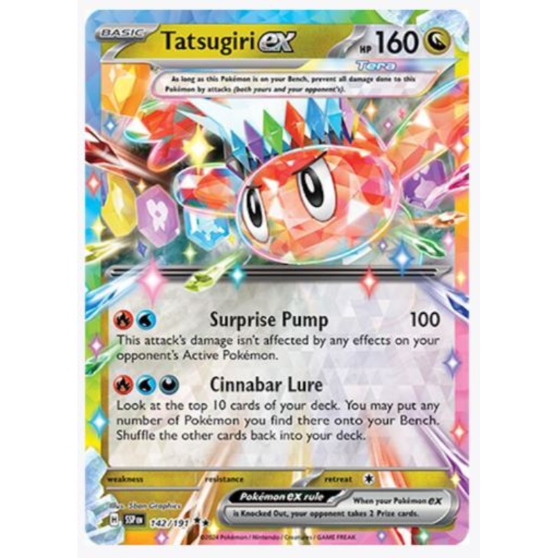 Card Number / Rarity:142/191 / Double RareCard Type / HP / Stage:Dragon / 160 / BasicAttack 1:[RW] Surprise Pump (100)This attack's damage isn't affected by any effects on your opponent's Active Pokemon.Attack 2:[RWD] Cinnabar LureLook at the top 10 cards