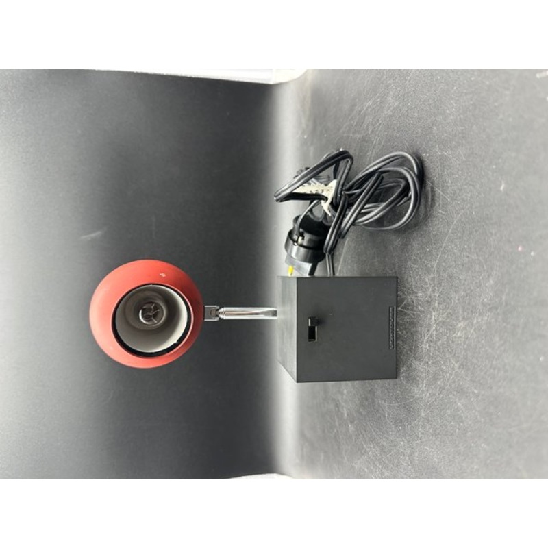 Lightolier Lytegem telescopic lamp by Micheal Lax USA 1960. Equipped with a sliding power button: which switches between off, soft light in the middle and light on. The red lampshade rotates 360, you can direct the light wherever you want. Black metal base and telescopic arm goes from 9 to 30 cm.