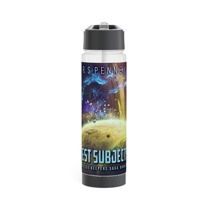 Add flavor and personality to your water with this infuser bottle. Twist the base off to access the infuser and add fruits, tea leaves, or anything you desire to enhance the flavor of your water. On the top, you’ll find a twist-on lid with a flip-top drinking sprout for a seamless drinking experience. This infuser is excellent for using at home, during outdoor excursions, or at the gym as a sports bottle. The cover art in this infuser water bottle is from R.S. Penney’s book, Test Subjects.