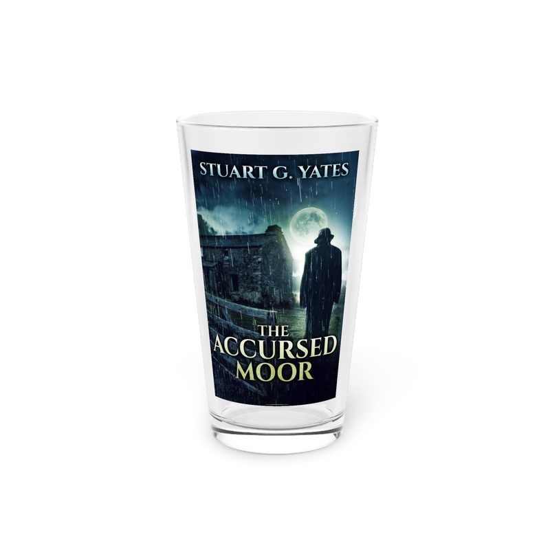 Nothing can replace a pint glass except for another pint glass. These long and transparent glasses are highly versatile, can make for a great housewarming gift, and are bound to be used in any household. The cover art on this pint glass is from Stuart G. Yates’s book, The Accursed Moor.