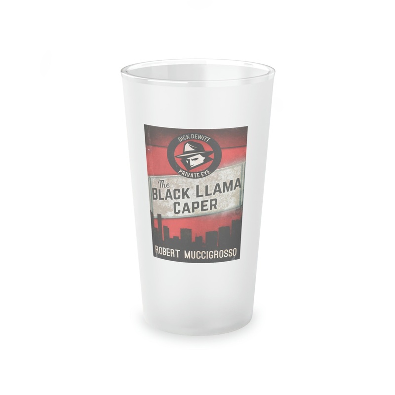 This frosted matte finish pint glass is versatile and dishwasher-safe. The cover art in this pint glass is from Robert Muccigrosso's book, The Black Llama Caper.