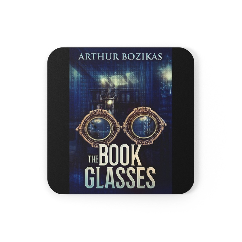 These coasters are made with a high-gloss top and feature a cork back to prevent sliding, and each order comes with a set of four coasters. The cover art in these coasters is from Arthur Bozikas's book, The Book Glasses.