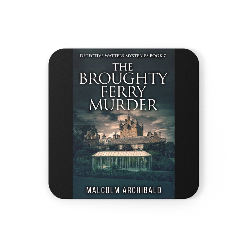 These coasters are made with a high-gloss top and feature a cork back to prevent sliding, and each order comes with a set of four coasters. The cover art in these coasters is from Malcolm Archibald's book, The Broughty Ferry Murder.