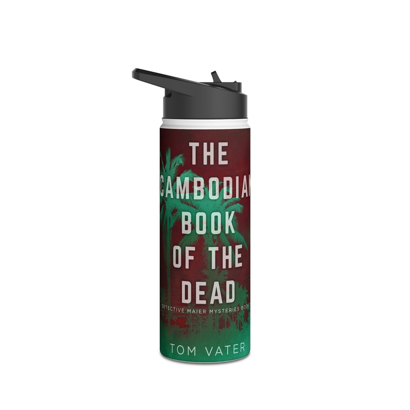 Quench your thirst in style with this 18oz stainless steel water bottle featuring a double-wall stainless steel build that keeps your drinks frosty for 24h and soothingly hot for 12h. This BPA-free, steel water bottle comes with a twist-on lid for easy sipping, making it excellent for daily use at work, at college, in the car, and beyond. The cover art in this water bottle is from Tom Vater’s book, The Cambodian Book Of The Dead.