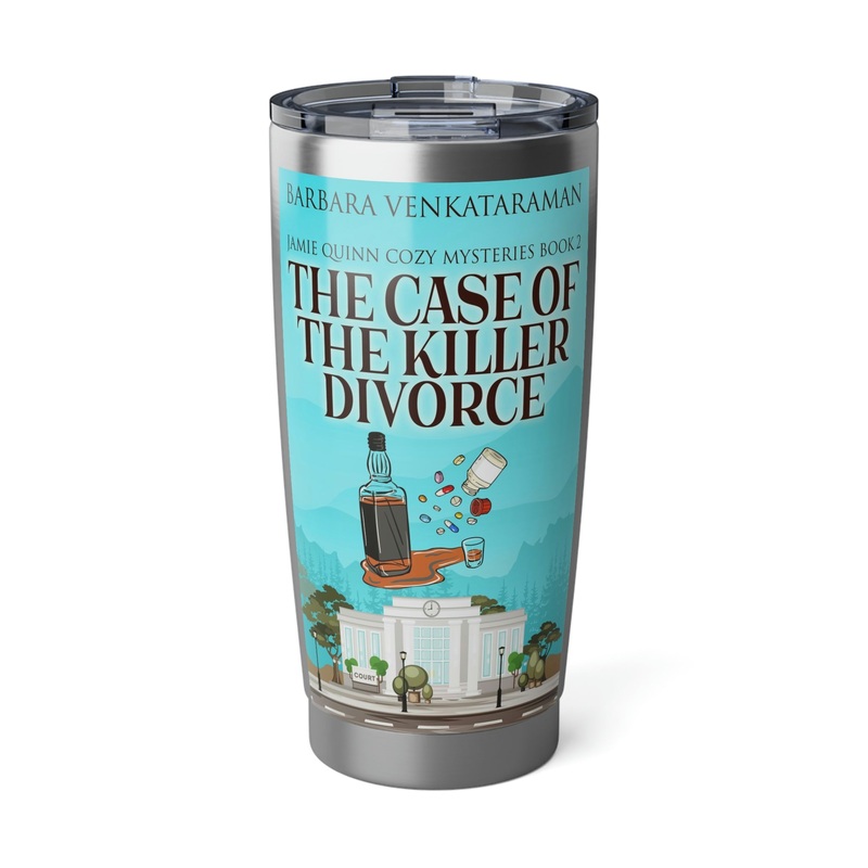 Minimize your plastic footprint with style. This tumbler fits perfectly into car cup holders, and the rubber gasket makes it spill-resistant on bumpier roads. The double-wall insulation makes sure drinks stay at the right temperature until the next pit stop. The cover art in this 20 oz tumbler is from Barbara Venkataraman’s book, The Case Of The Killer Divorce.